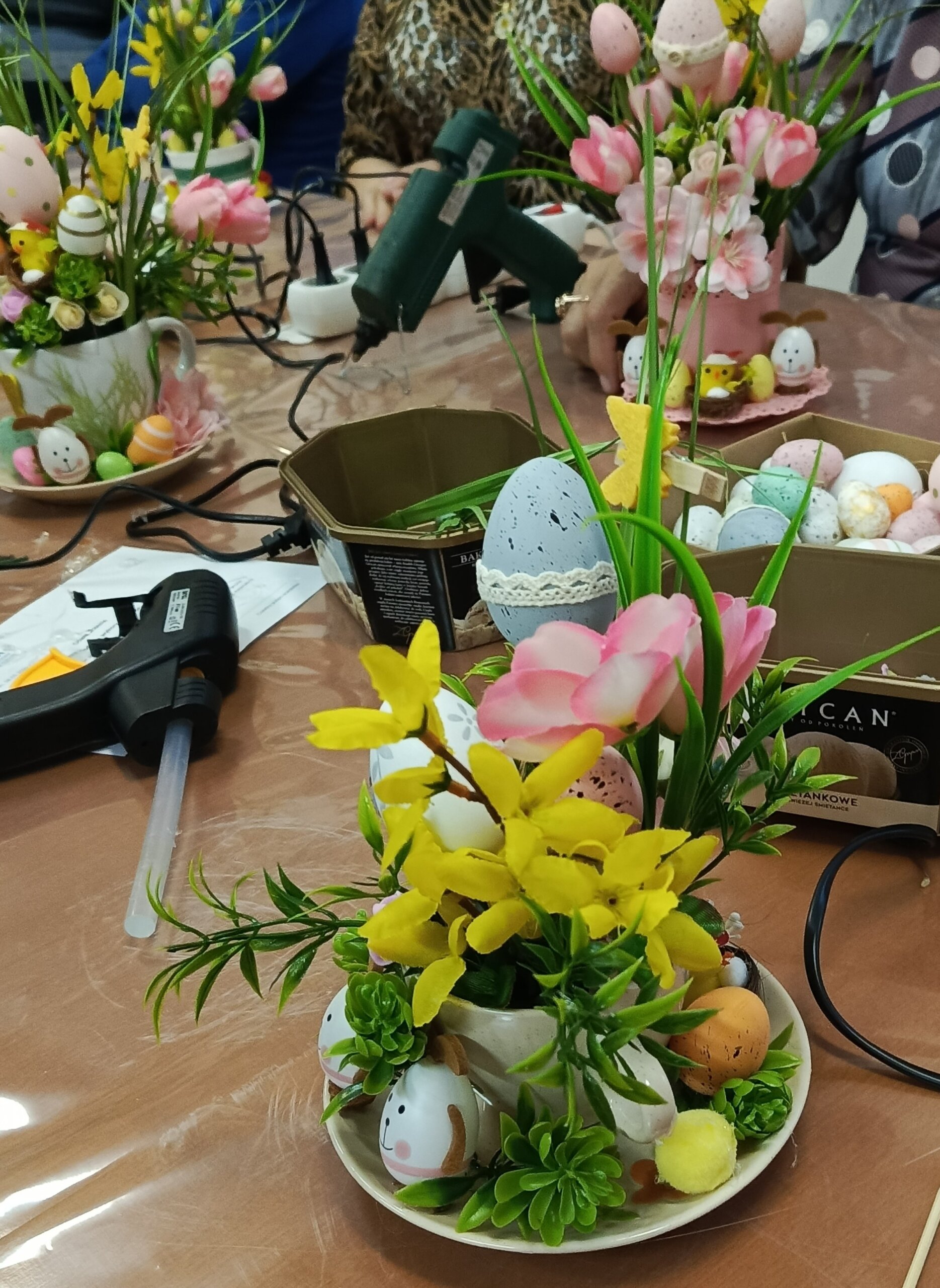 18.03.2026 r. w Filii bibliotecznej w Żłobnicy członkowie Klubu Seniora wykonali Wielkanocne stroiki, a 21.03.2026 r. podczas sobotnich zajęć w bibliotece w Kleszczowie dzieci z Klubu Przyjaciół Biblioteki wykonały dekoracje o tematyce wiosenno-wielkanocnej.