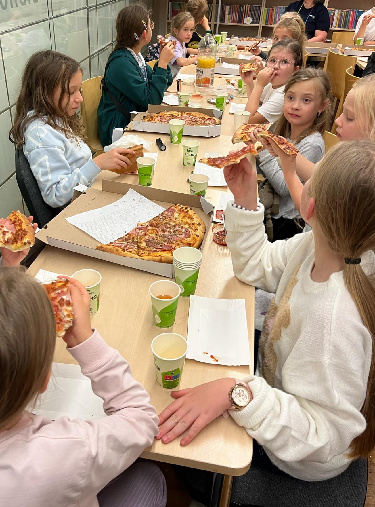 Wieczór zakończyliśmy w miłej i radosnej atmosferze – przy wspólnej pizzy, która była pysznym zwieńczeniem tej pełnej wrażeń nocy.