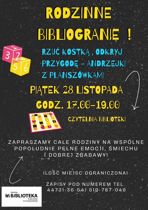 Rodzinne bibliogranie! Przyjdźcie, zagrajcie , poznajcie nowe tytuły i spędźcie czas razem – bez pośpiechu, bez ekranów, za to z masą frajdy !