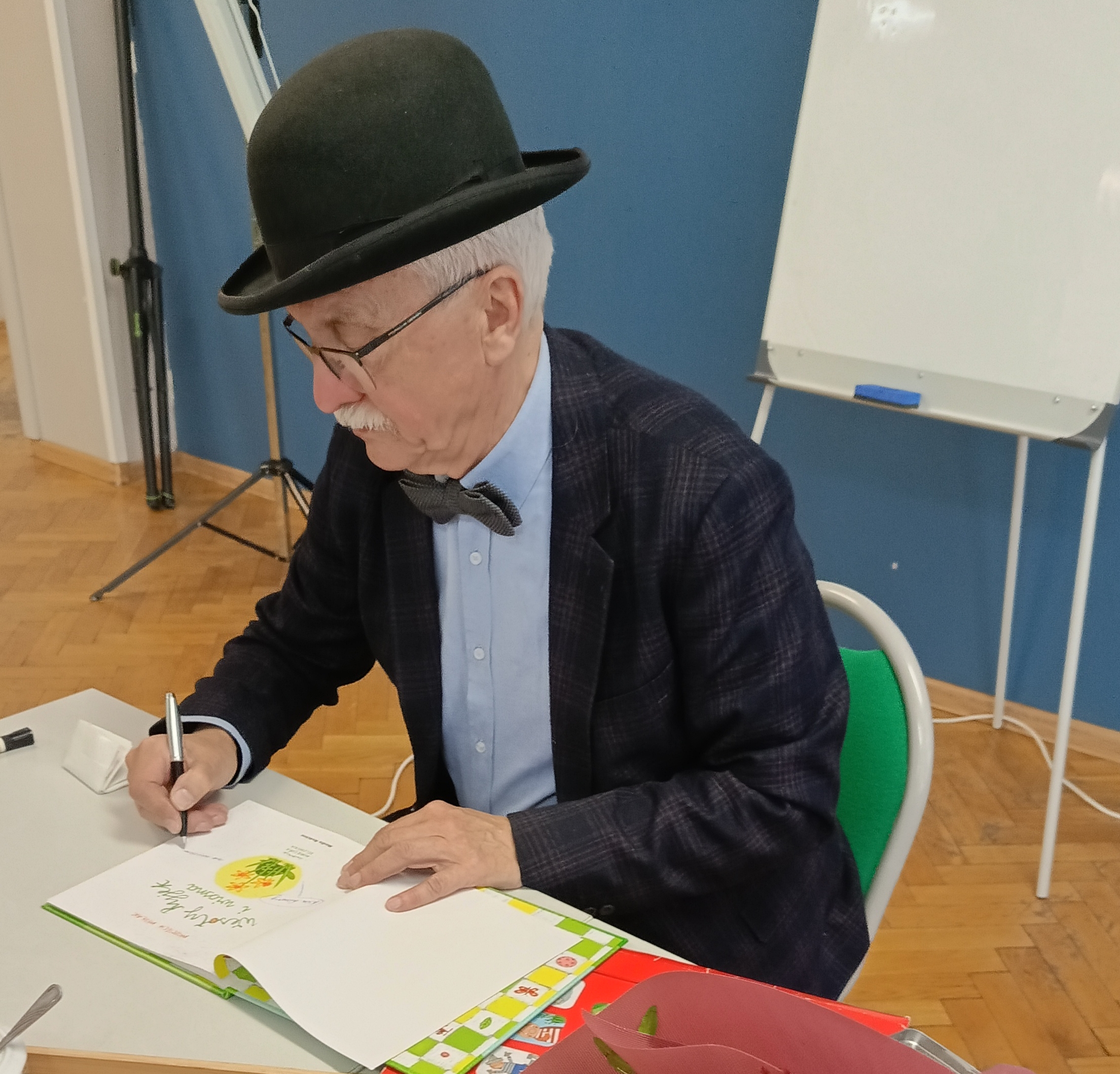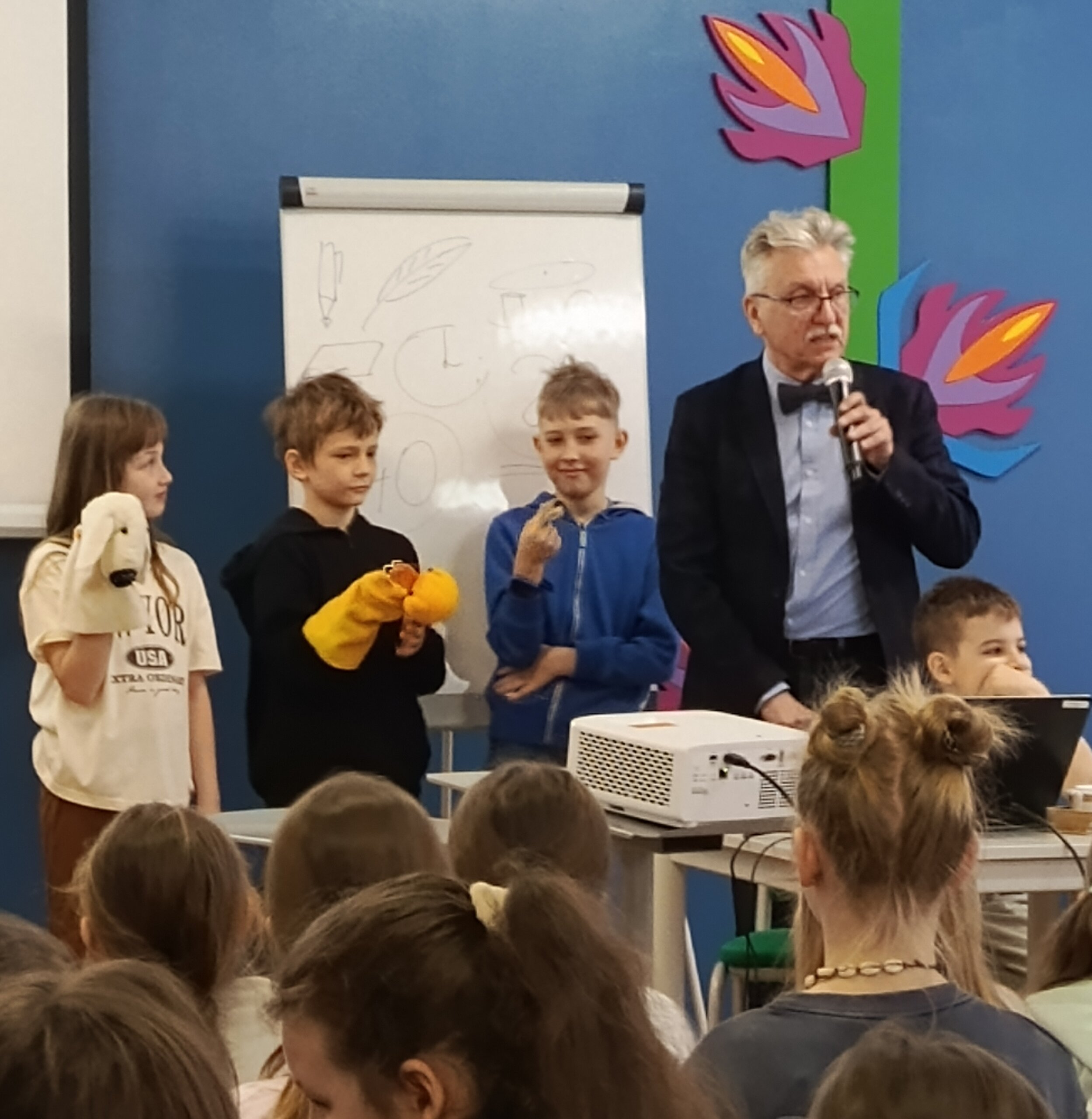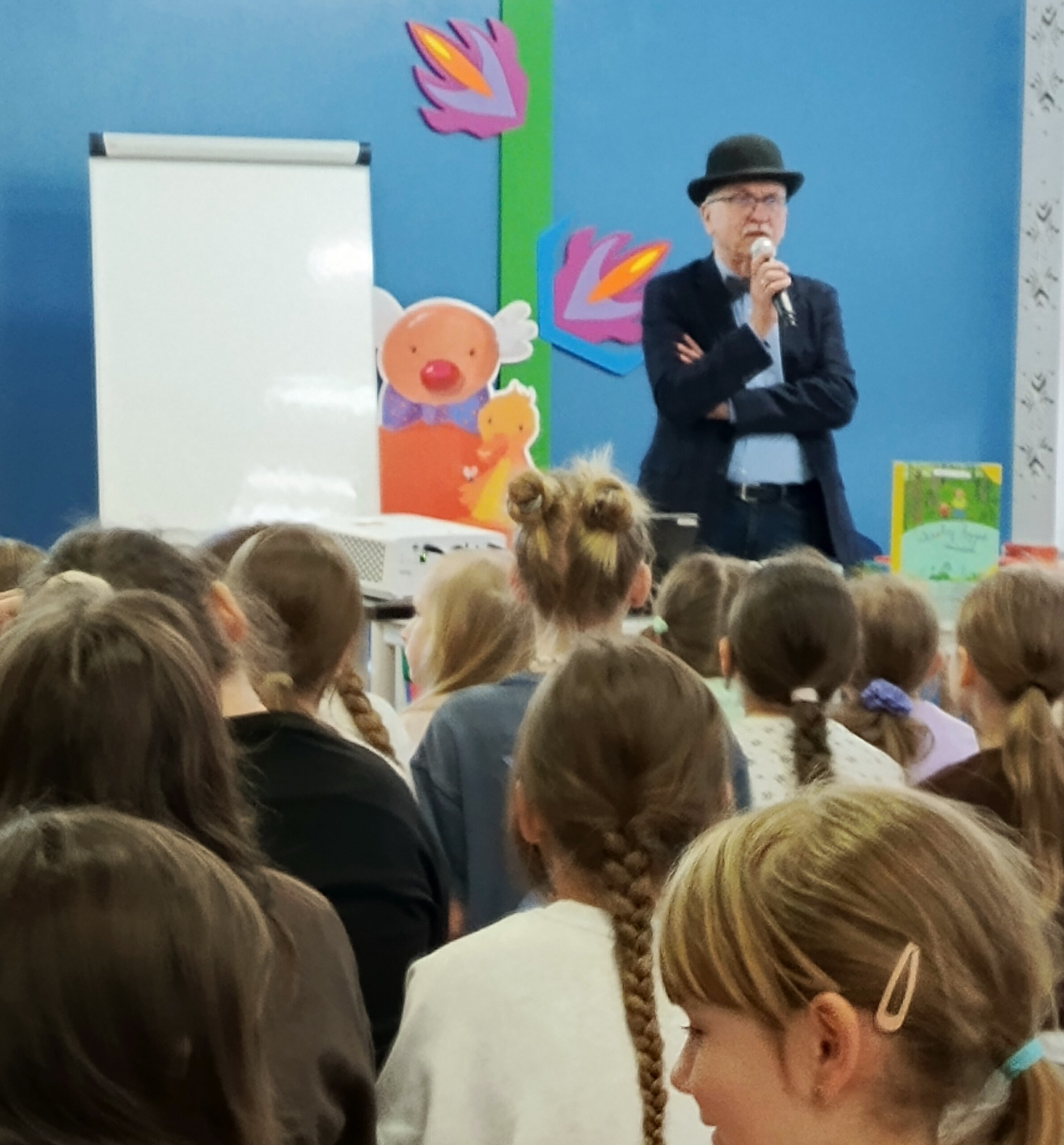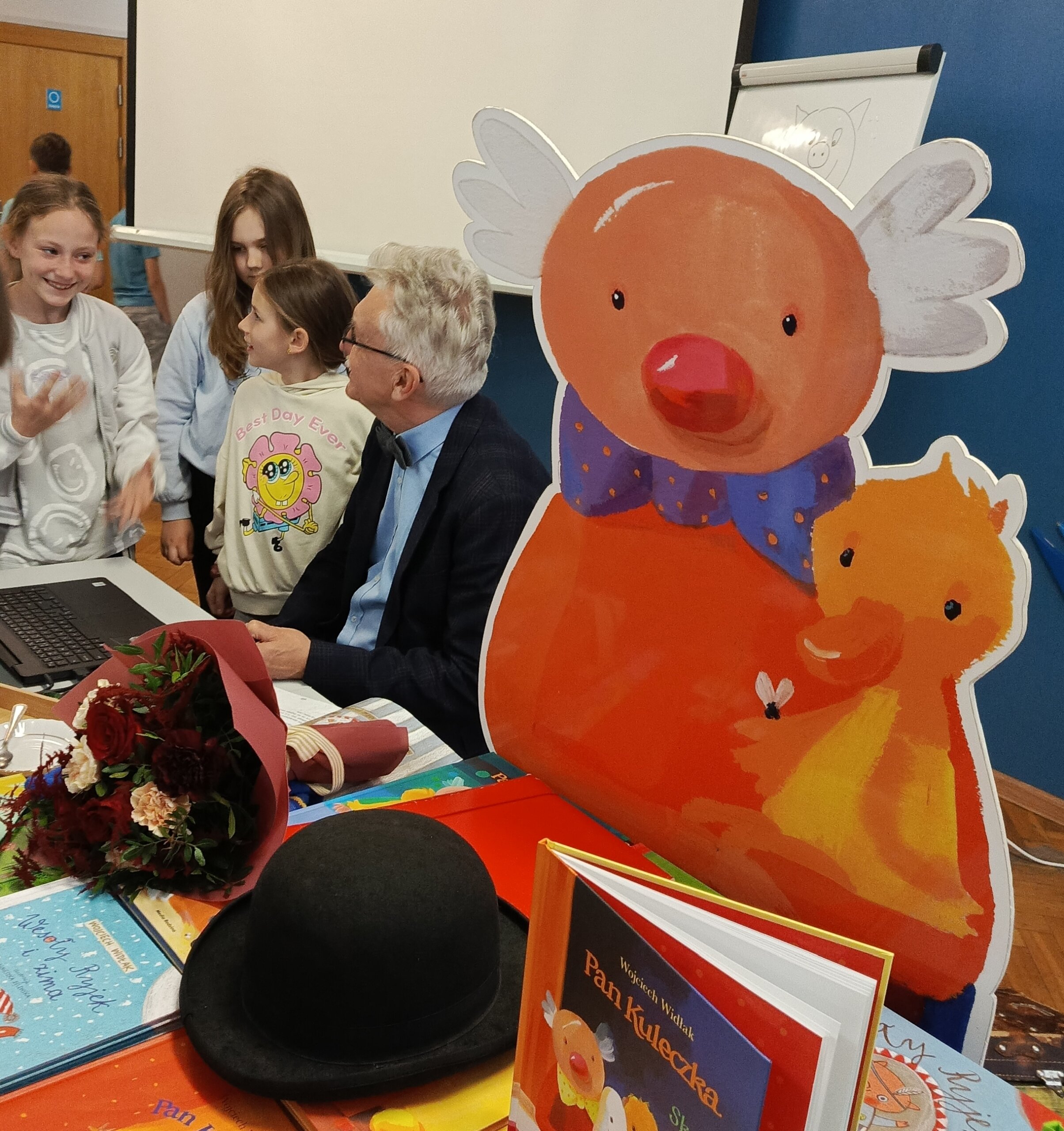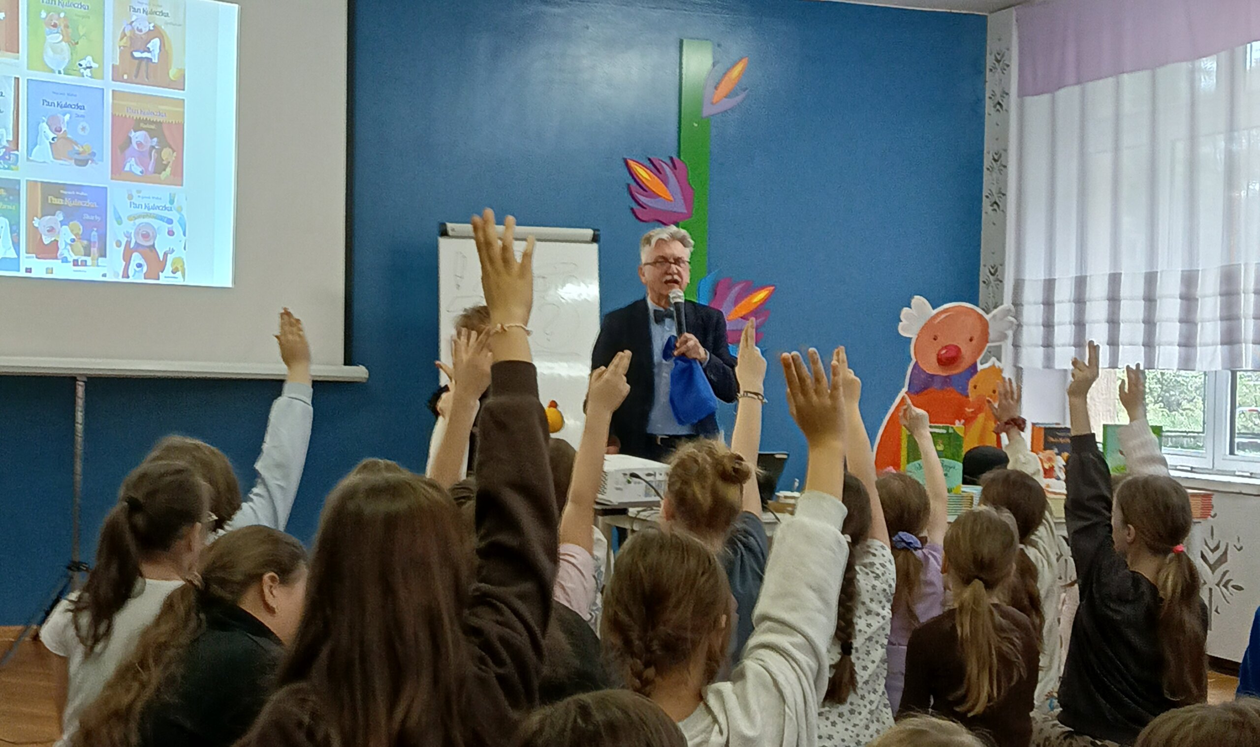 W dniu 20.04.2026 r. odbyło się spotkanie autorskie z Wojciechem Widłakiem. Z autorem książek serii „Pan Kuleczka” spotkali się uczniowie klas III Szkoły Podstawowej im. Janusza Korczaka w Kleszczowie.