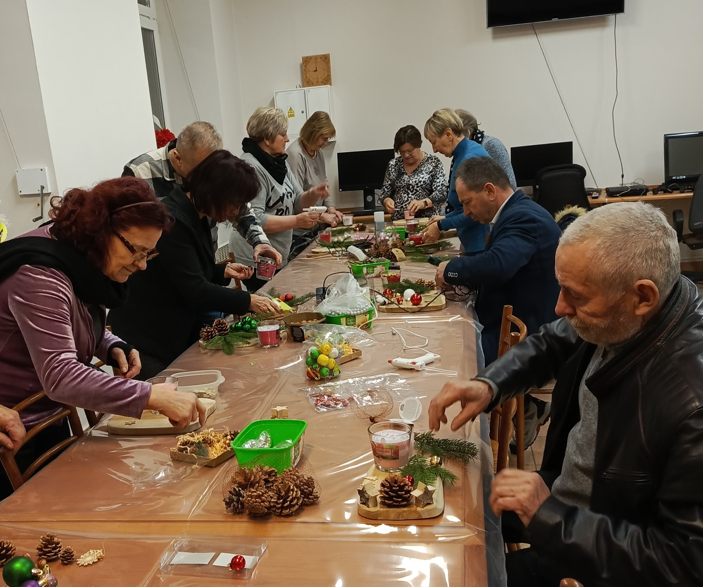 W dniu 03.12.2025 r. w Filii bibliotecznej w Żłobnicy odbyły się warsztaty stroików świątecznych. Podczas zajęć uczestnicy wykonali stroiki świąteczne, zdobione szyszkami, suszonymi pomarańczami, cynamonem oraz kolorowymi bombkami. To wyjątkowa okazja, by w pełni poczuć magię świąt i jednocześnie rozwinąć swoje kreatywne umiejętności. Utrzymane w różnej stylistyce stroiki będą stanowić doskonały element dekoracyjny w każdym domu.